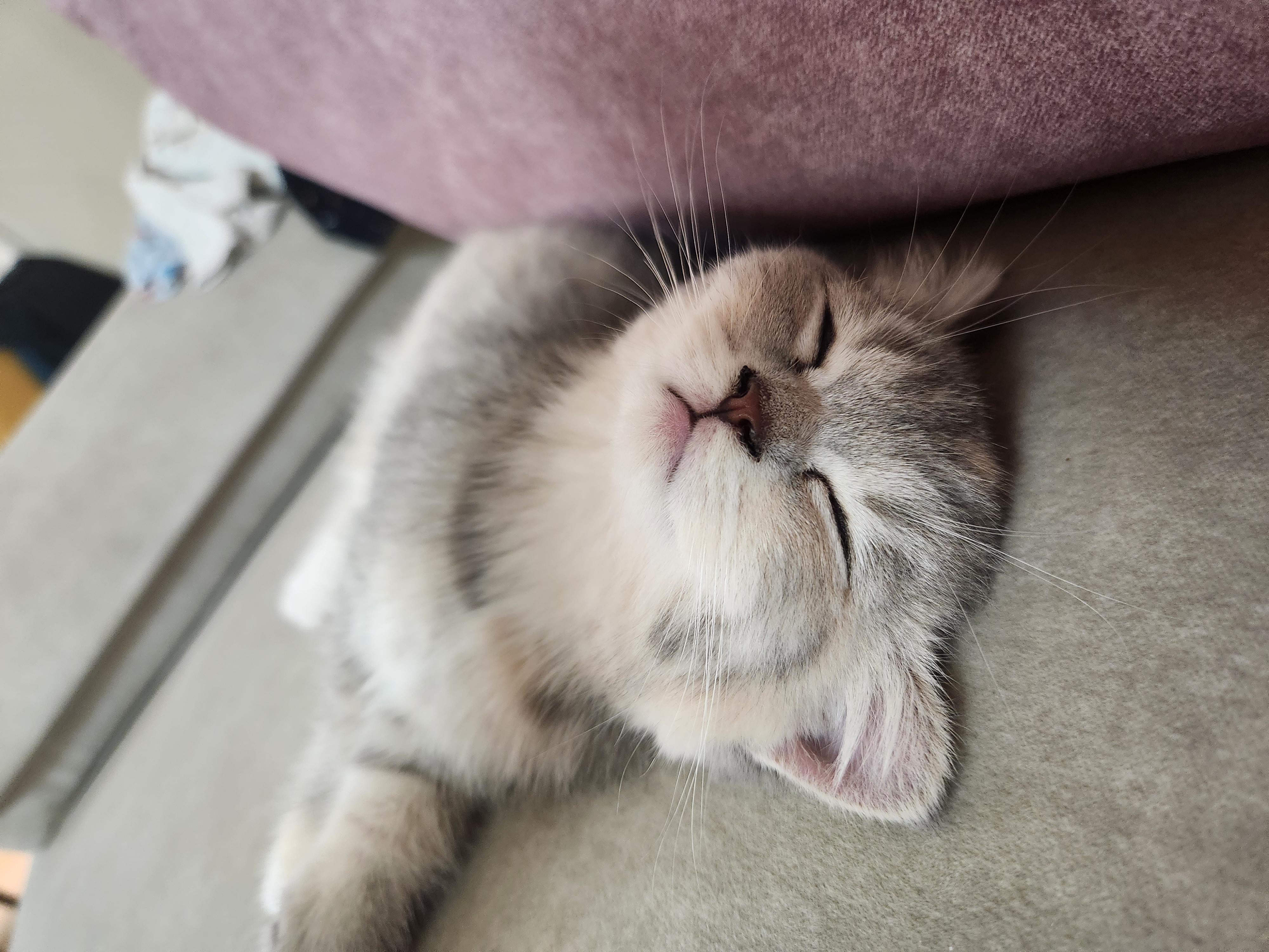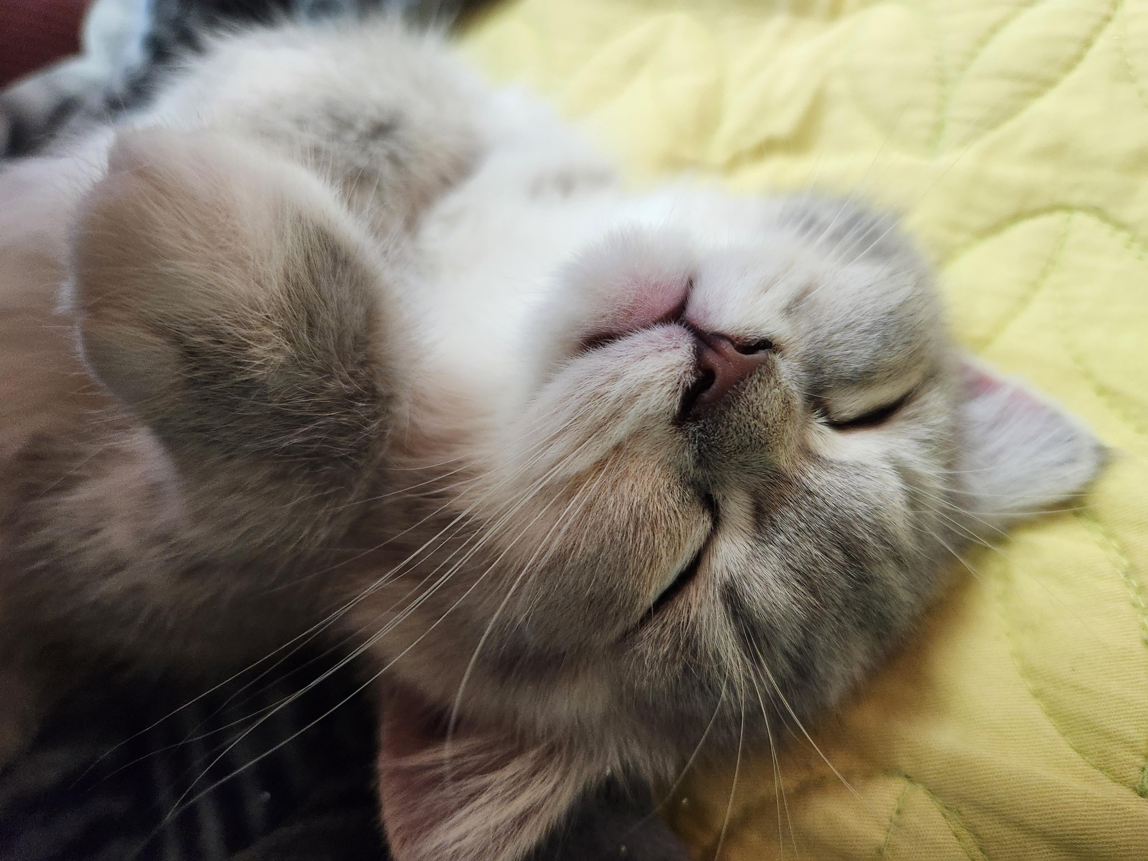 고양이가 배를 보이고 자는 이유는 보통 안락한 환경에서의 안심감 때문이다.